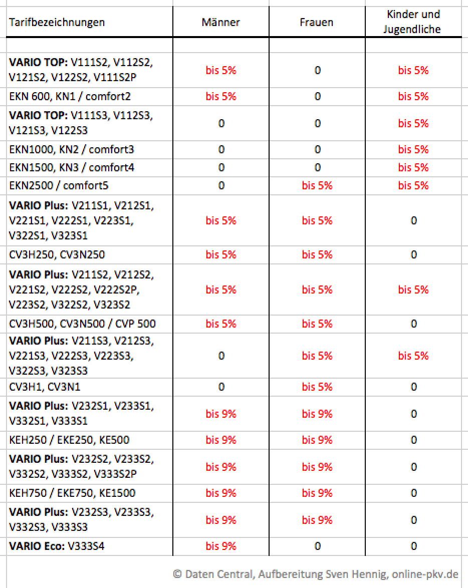 Die Central Krankenversicherung hat nun bereits die voraussichtlichen Anpassungszahlen mit Beginn 01. 01. 2013 bekannt gegeben. In den folgenden Tarifen findet somit eine Beitragsanpassung statt: