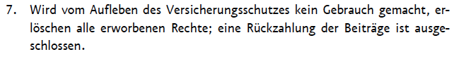 Dabei folgt dann gleich die nächste Frage. Wenn “die mich nicht wechseln lassen ohne neue Gesundheitsprüfung”, was ist denn dann mit den Beiträgen? Nun, diese sind leider weg. Warum steht auch in den Bedingungen: