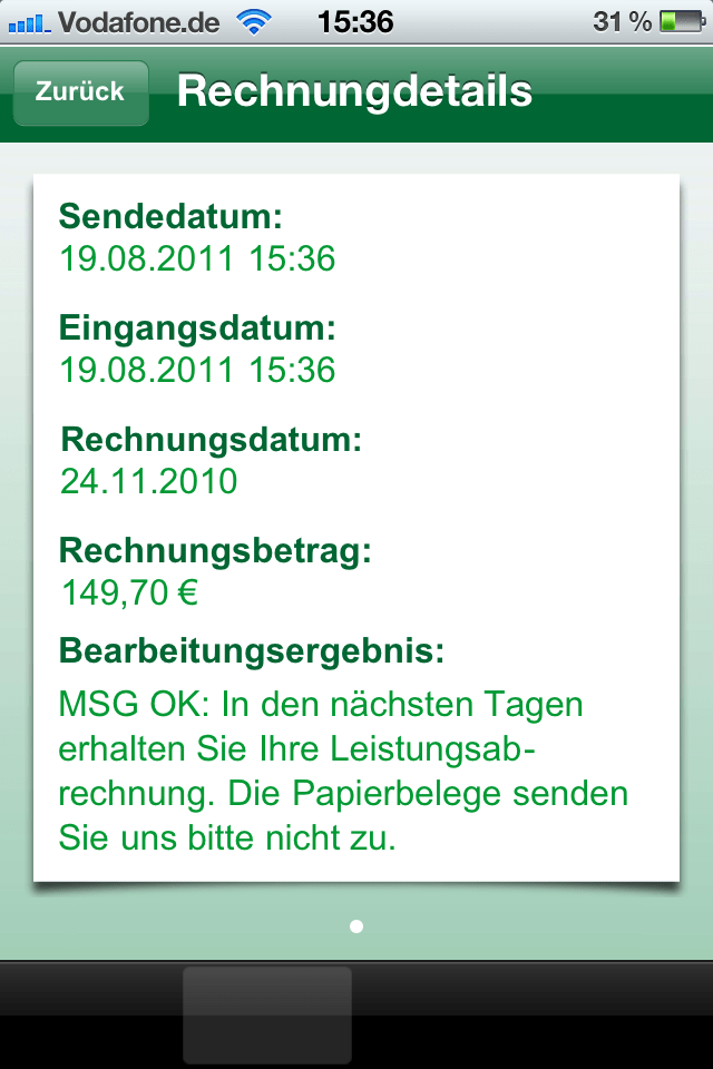 Damit bleibt eine telefonische oder schriftliche Nachfrage “wo bleibt mein Geld” oftmals überflüssig. Nachdem die Leistungen bearbeitet wurde, erhält der Kunde sein Geld auf gewohntem Wege auf’s eigene Konto.