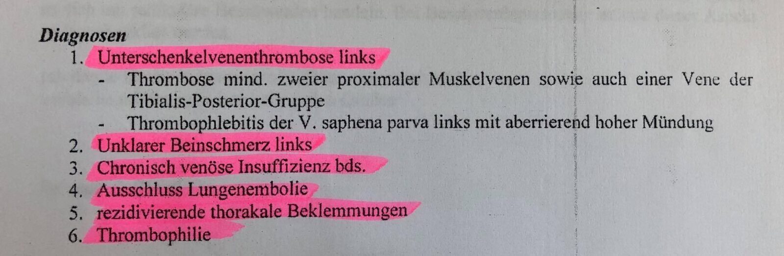 “Die Unterschenkelthrombose brauchen Sie aber nicht angeben, da diese ja nur im Unterschenkel war.”