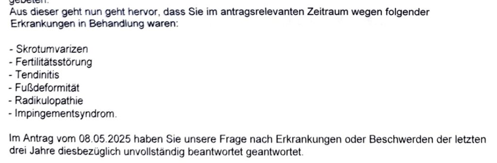 | Was wirft der Versicherer als verschwiegene Diagnose vor? | Was war wirklich da + weitere Erklärungen |